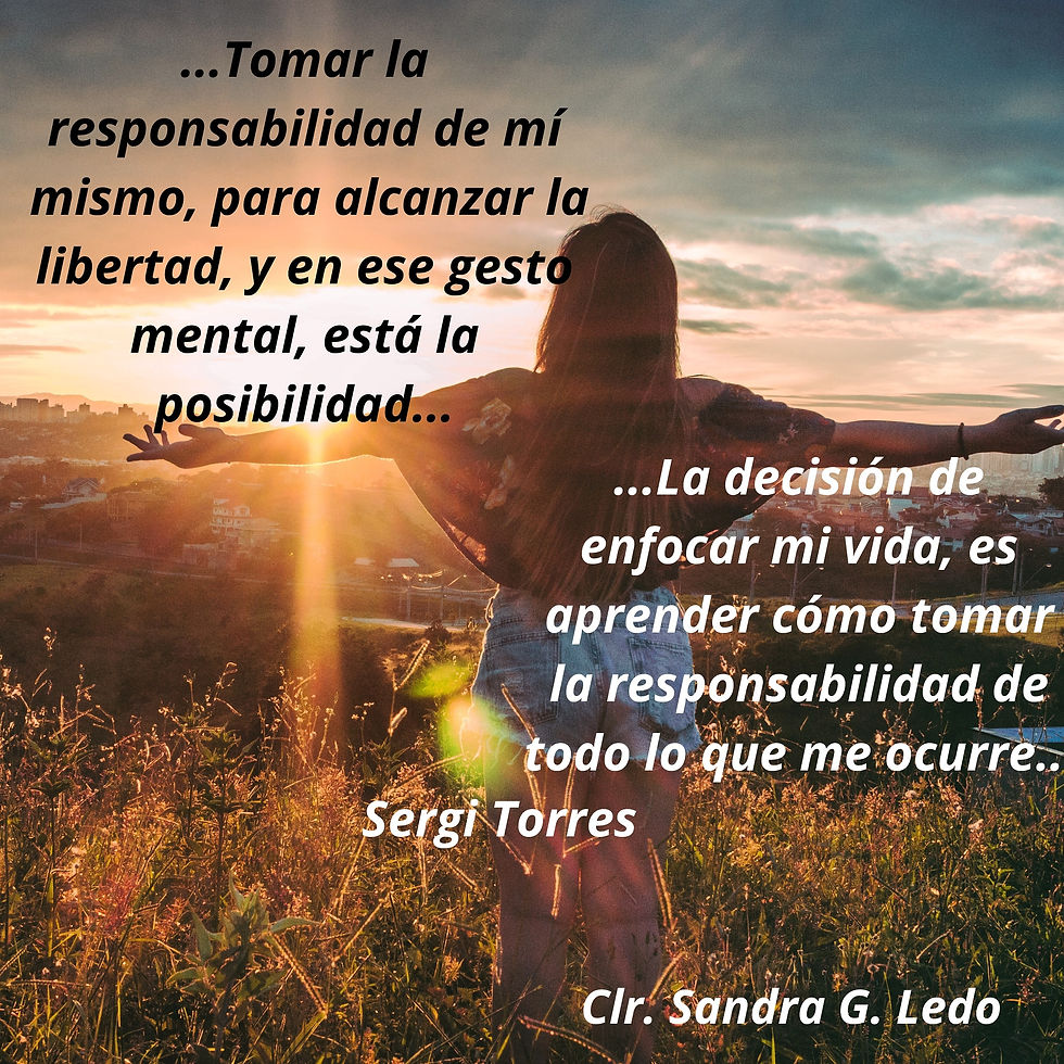 Si no soy consciente de mi responsabilidad sobre lo que pienso, sobre lo que elijo y cómo lo siento, no puedo encontrar "la libertad", porque estaré sujeto a las creencias que hasta ahora tenía sobre las personas, los hechos, las circunstancias y por ende sus consecuencias.