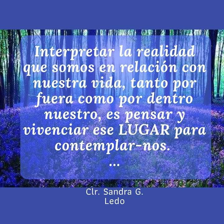Interpretar la realidad que somos en relación con nuestra vida, tanto por fuera como por dentro nuestro, es pensar y vivenciar ese LUGAR para contemplar-nos.